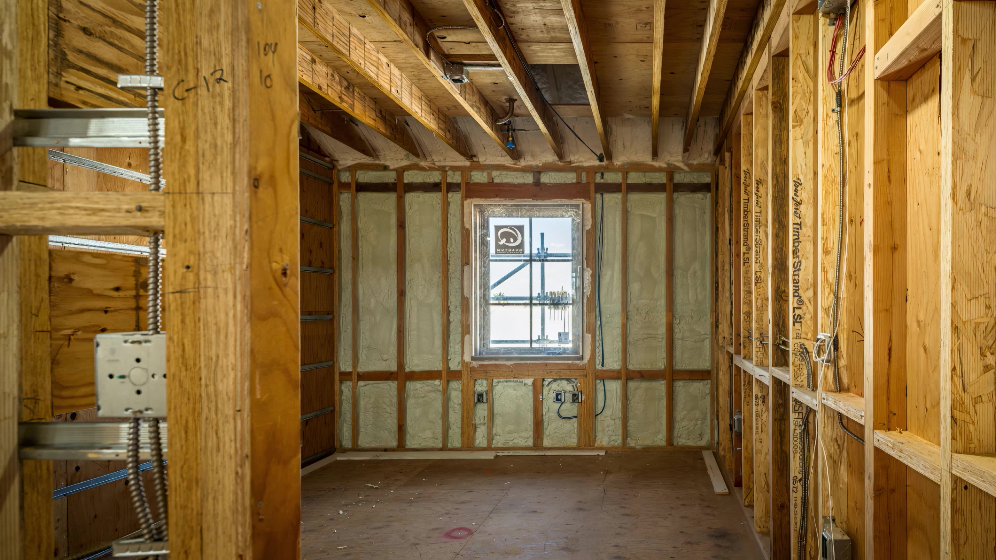 Crews are moving through the final stages of interior close-in. Insulation is now in place and wallboard is beginning to define the first finished surfaces.