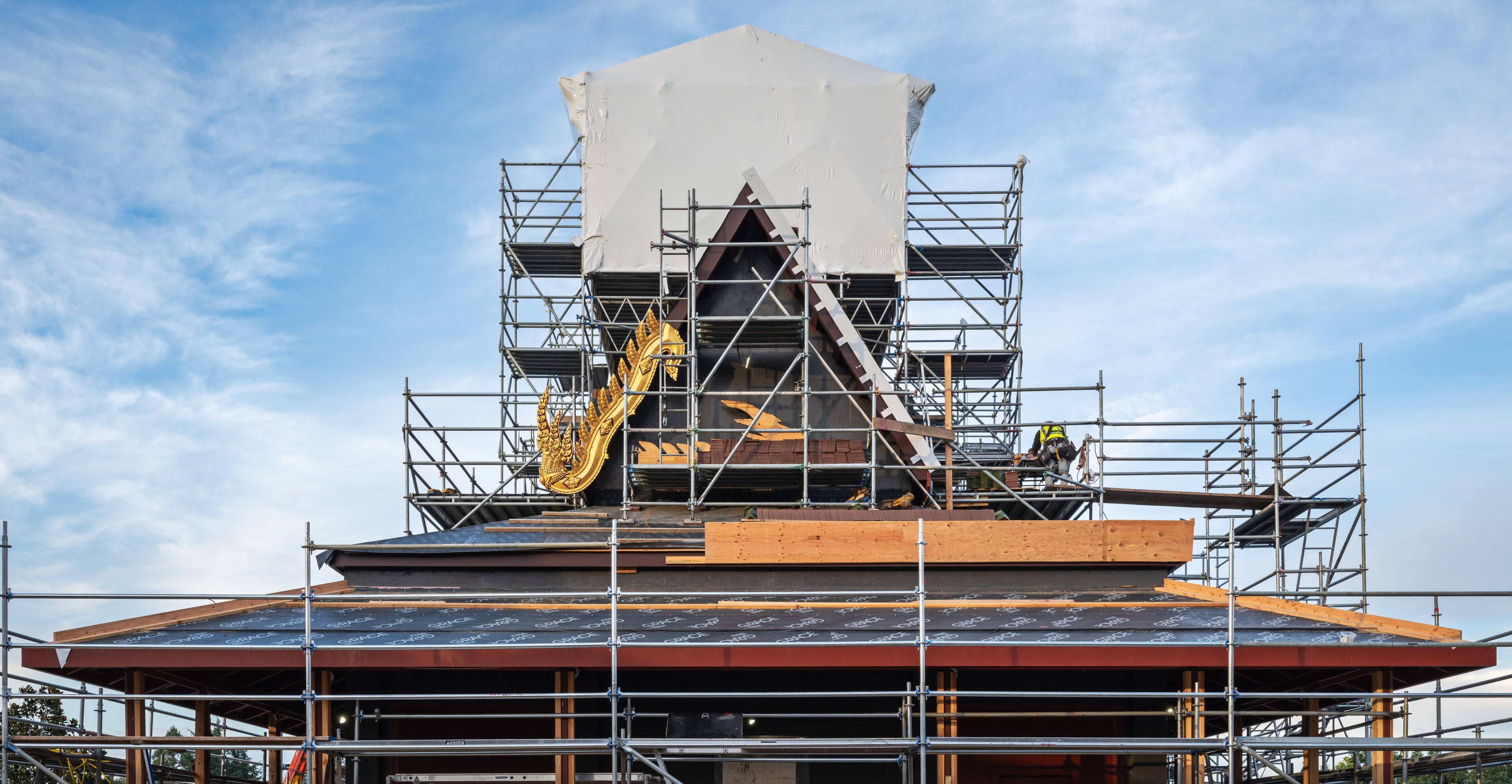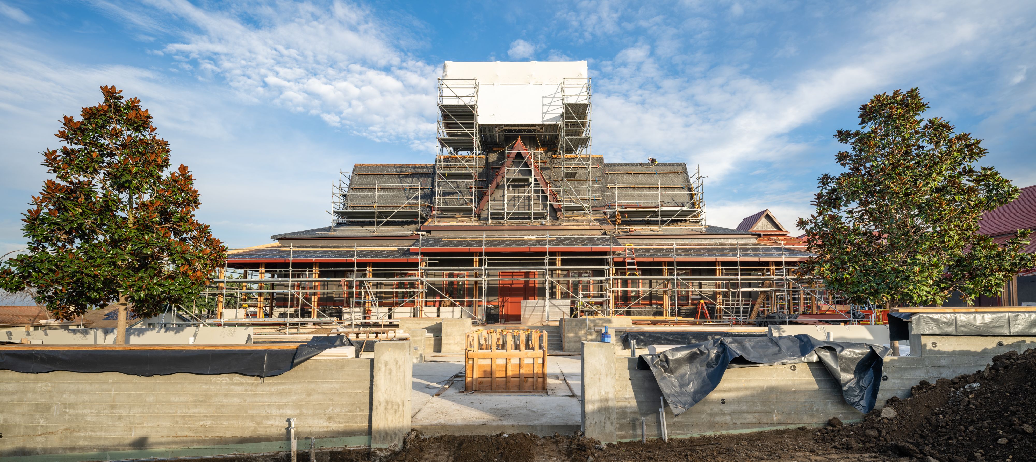 Roofing has been underway across the campus for several months. With the community building roof largely complete, attention has shifted to the main sanctuary. Khmer roof forms are typically steep and heavily tiled. They carry much of a building’s visual identity. In California, this kind of expression is rare and is part of what makes the sanctuary feel immediately distinct.