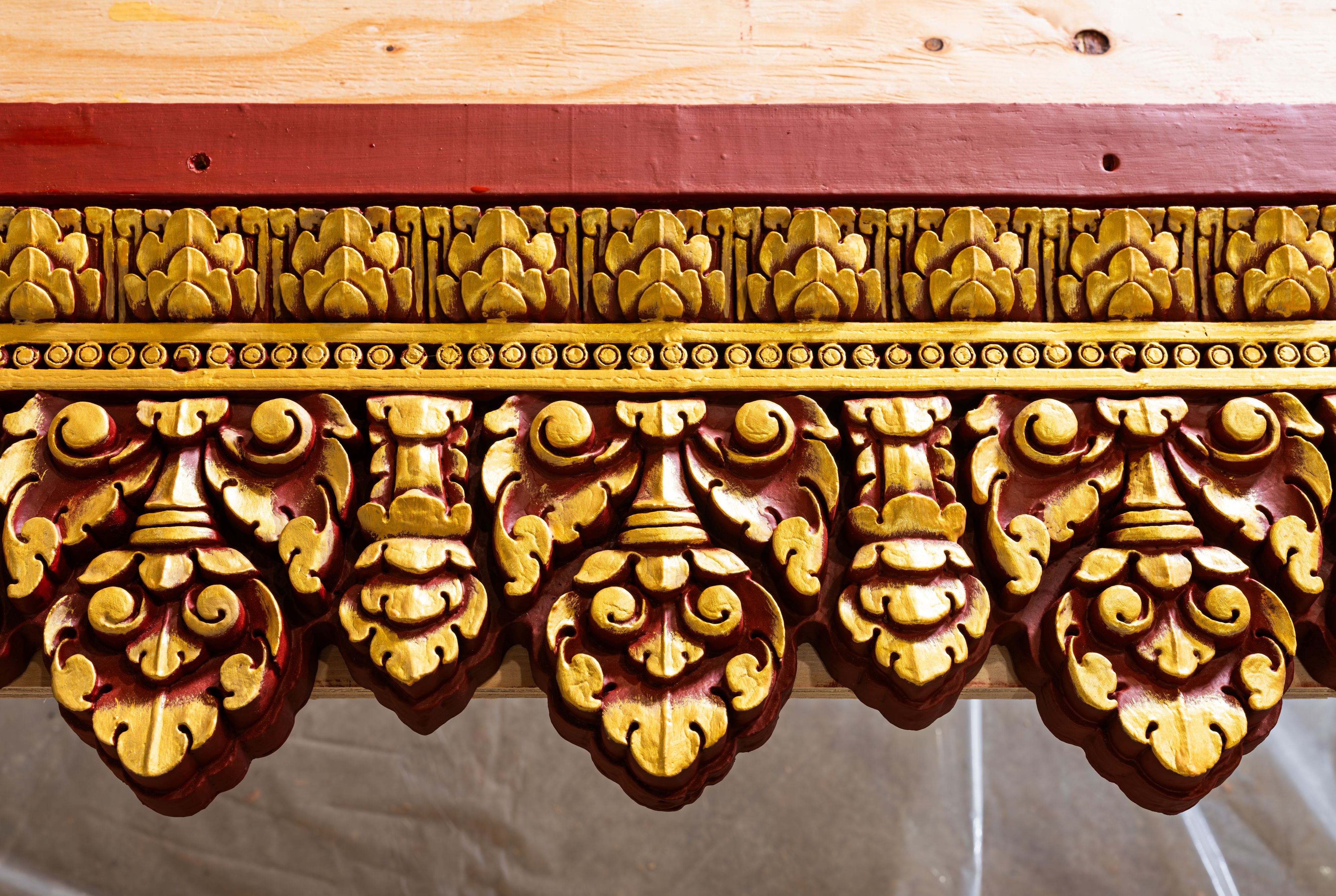This work reflects an ongoing process of learning and adaptation. Specialty decorative painting consultants have been studying Khmer precedents and helping translate the approach into a process the site team can carry out with precision and care.